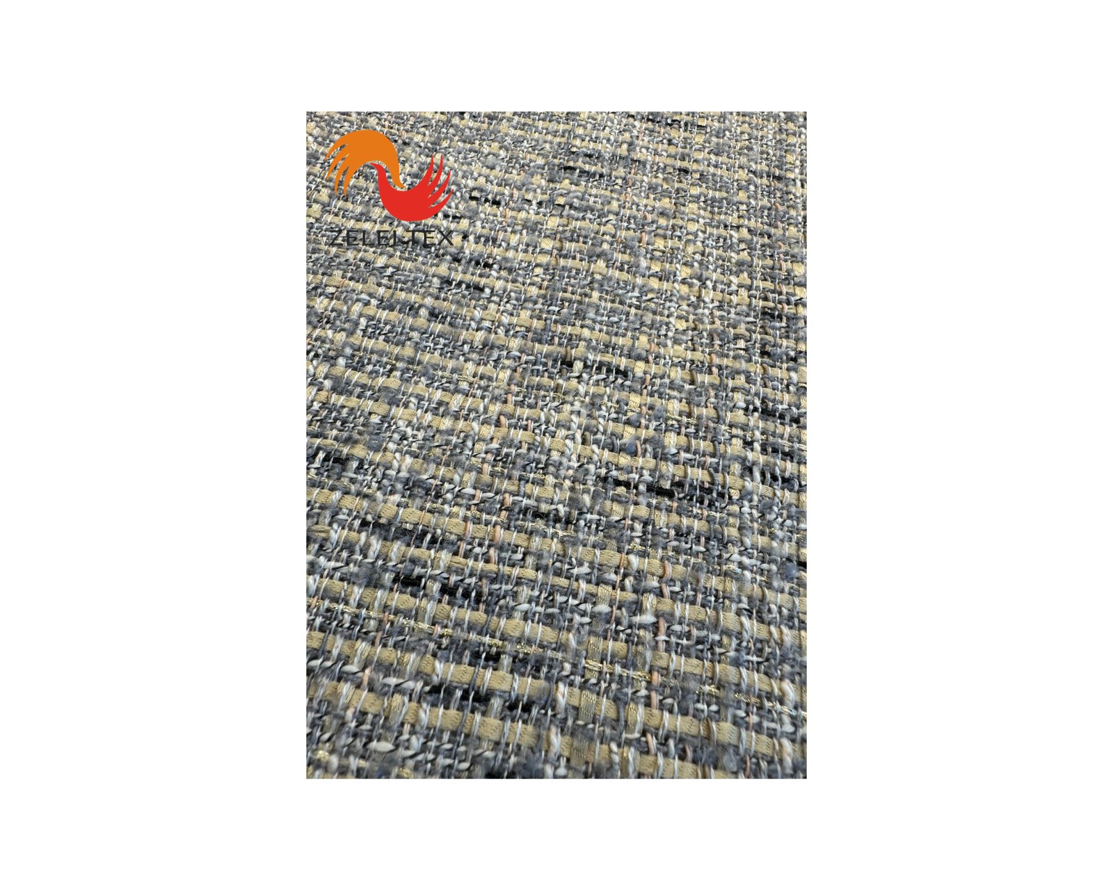 This fabric has a width of 57’’/58’’ cm and a weight of 360 (g/m2). It is a woolen woven fabric with a tweed texture, making it ideal for women’s shoes, hats, and bags.