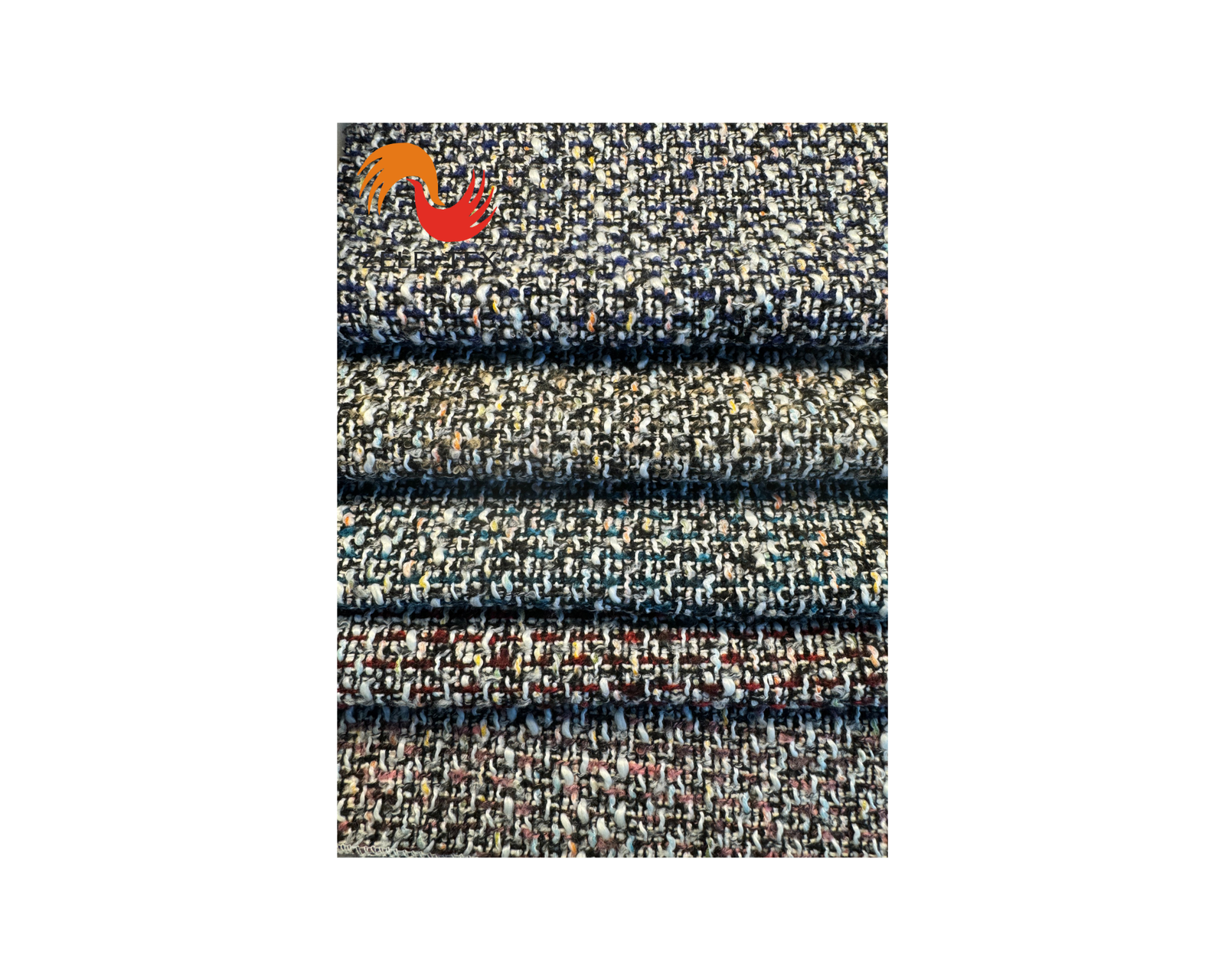 This fabric has a width of 57’’/58’’ cm and a weight of 500 (g/m2). It is a woolen woven fabric with a tweed texture, making it ideal for women’s shoes, hats, and bags.